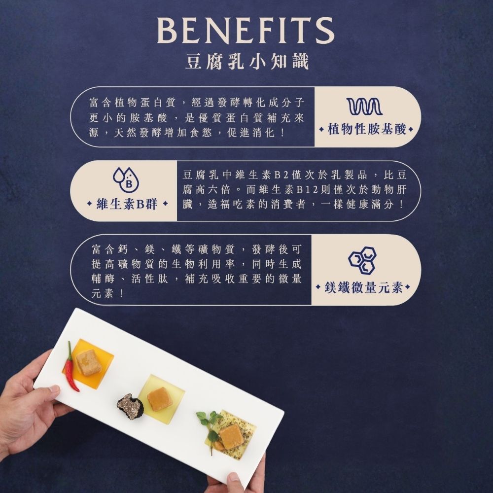 A:「蒜香奧勒岡風味」為五辛素,其餘的「橄欖油豆腐乳」是全素可食,不含任何動物性原料!